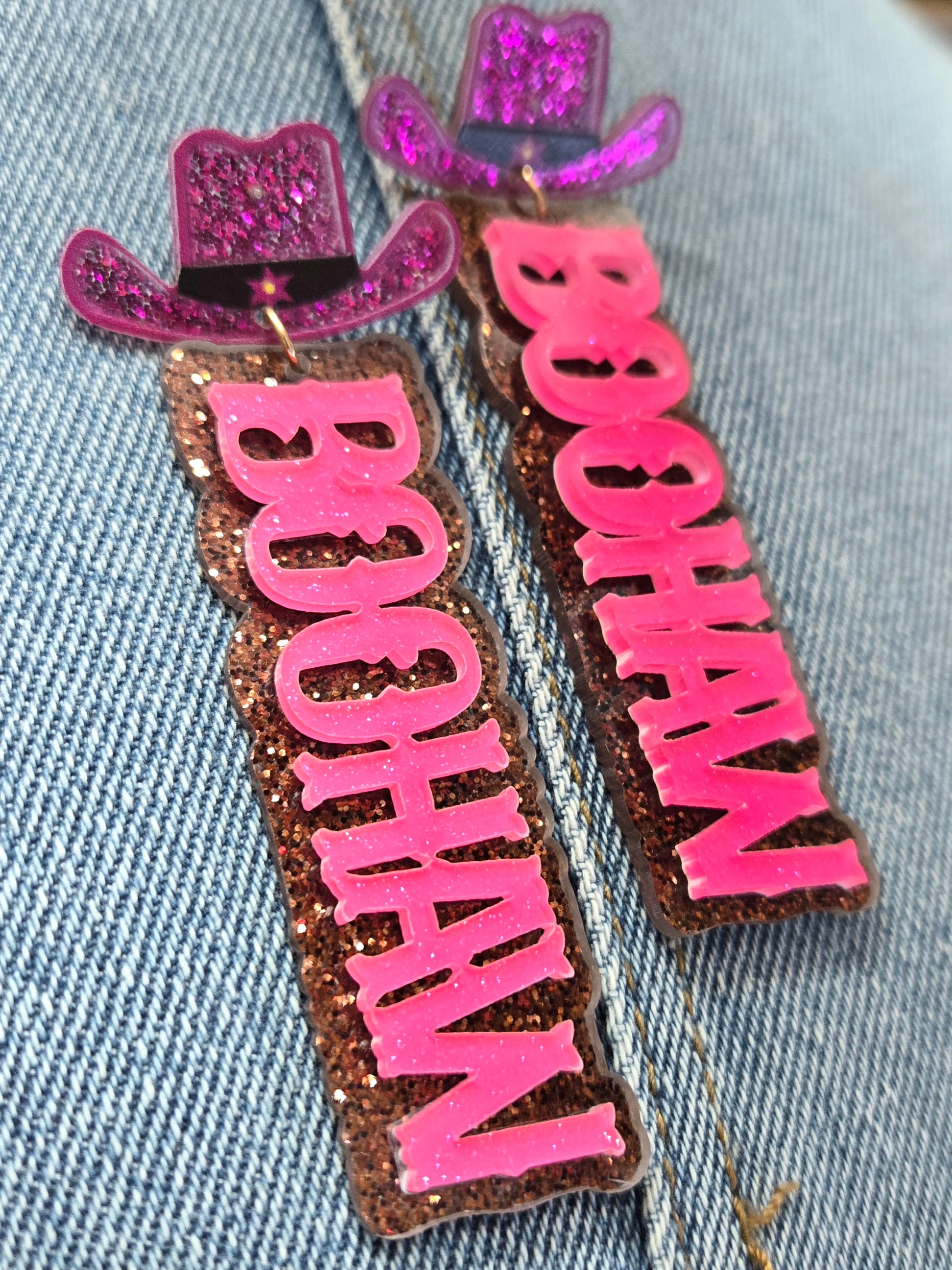 Acrylic Western Theme Word BOOHAW Drop Dangle Post Earrings