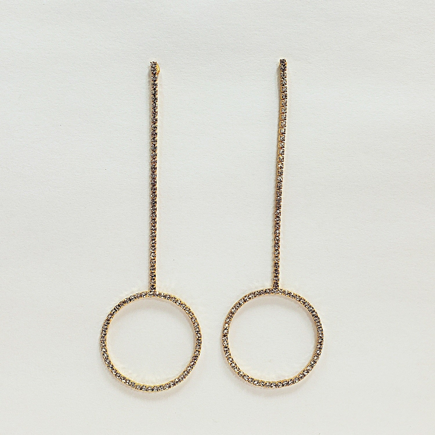 Clear Rhinestones Deco Circle Shape Drop Dangle Post Earrings