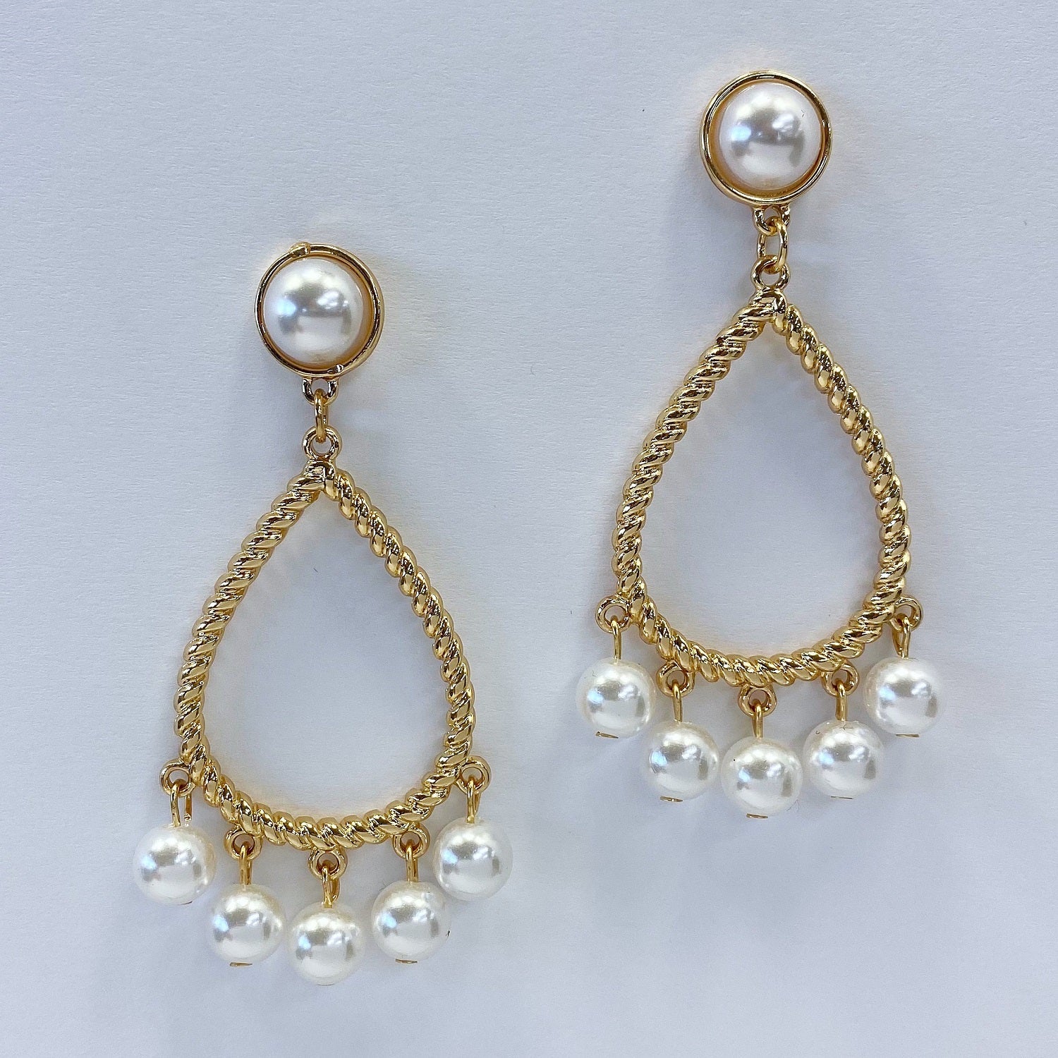 Pearl Decorated Teardrop Shape Drop Dangle Post Earrings