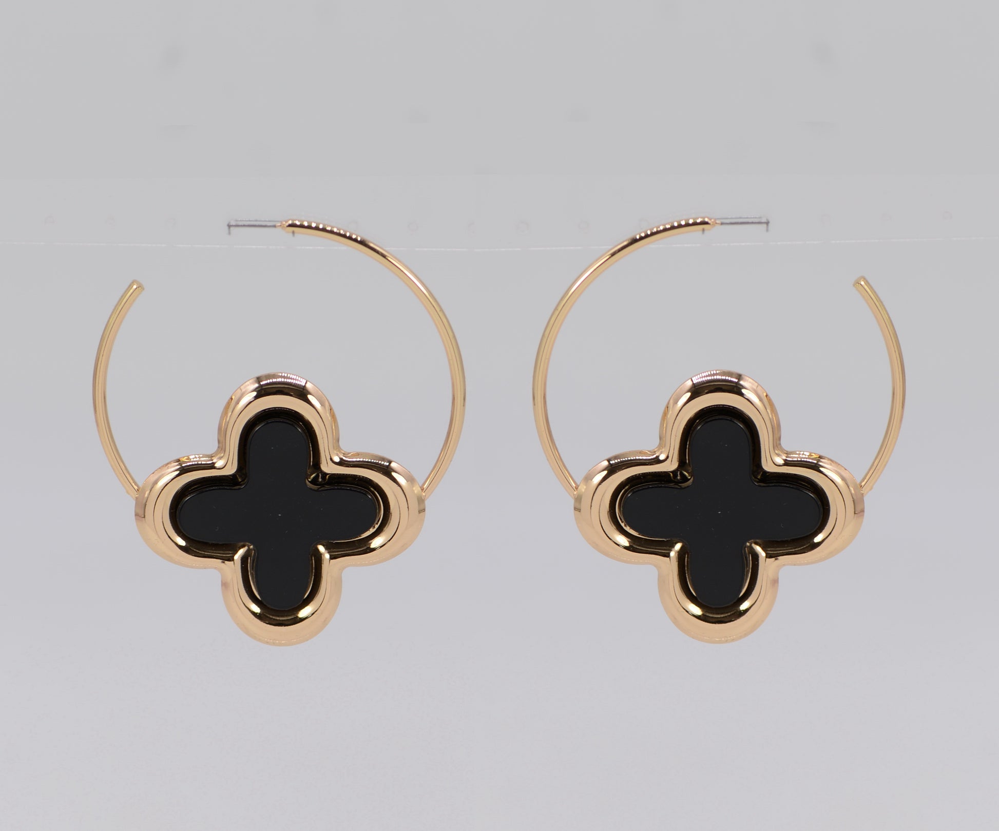 Large Clover Design Accented Open Circle Drop Post Hoop Earrings