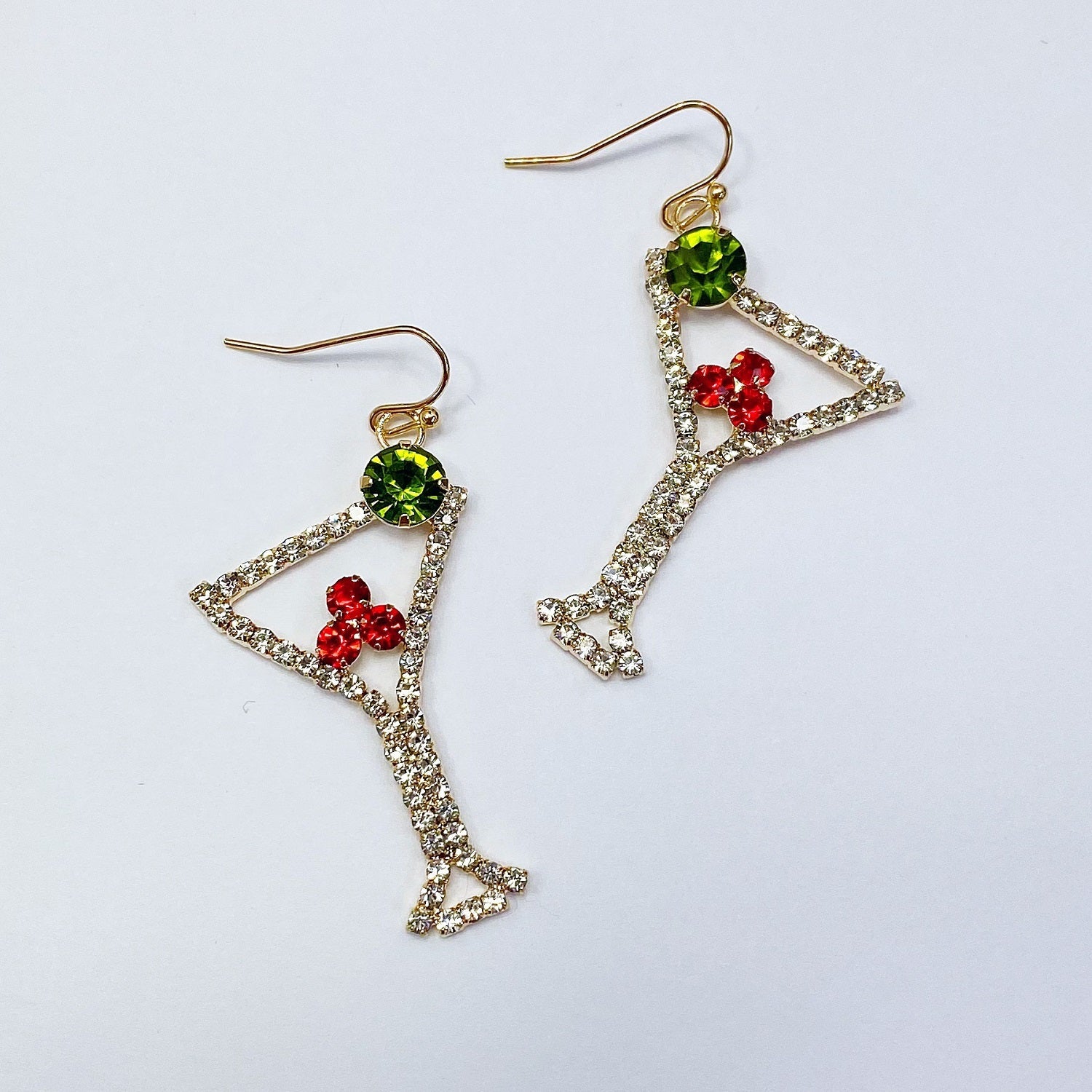 Rhinestones Deco Cocktail Glass Design Drop Dangle Hook Earrings