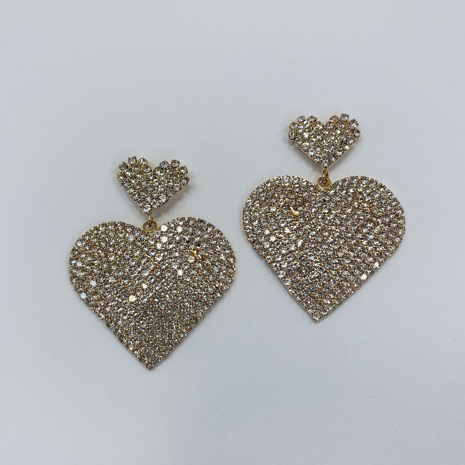 Rhinestones Deco Heart Love Shape Drop Dangle Post Earrings
