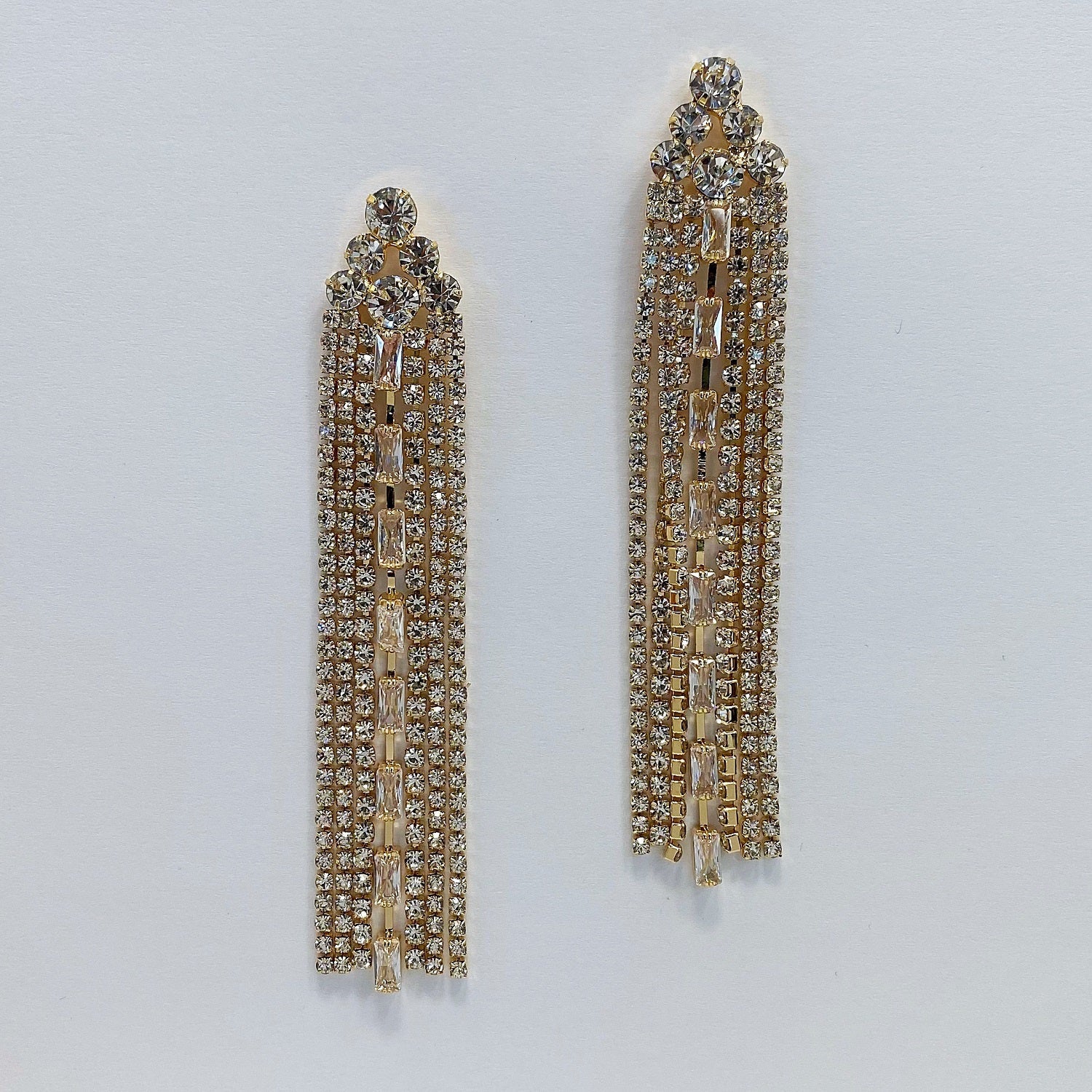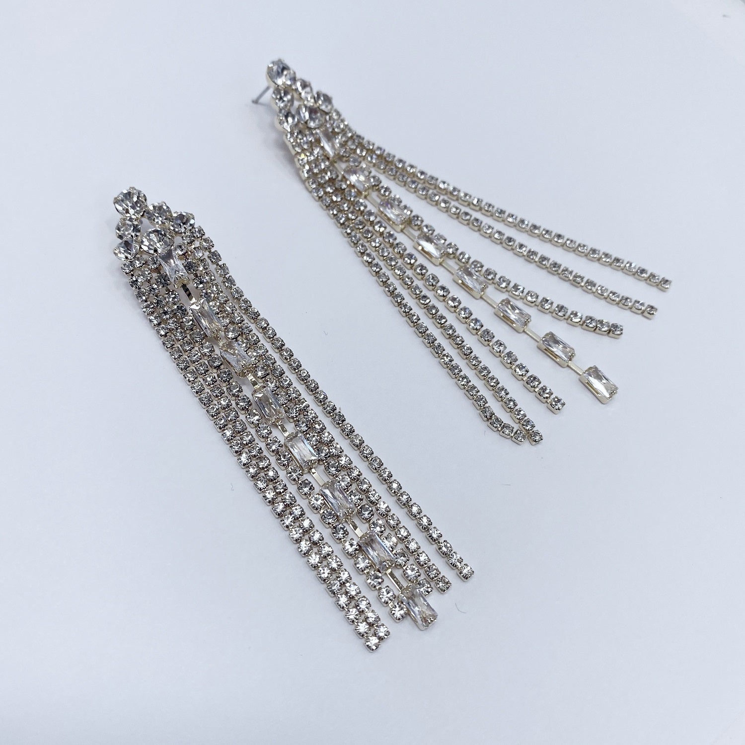 Rhinestones Deco Tassel Fringe Drop Dangle Post Earrings