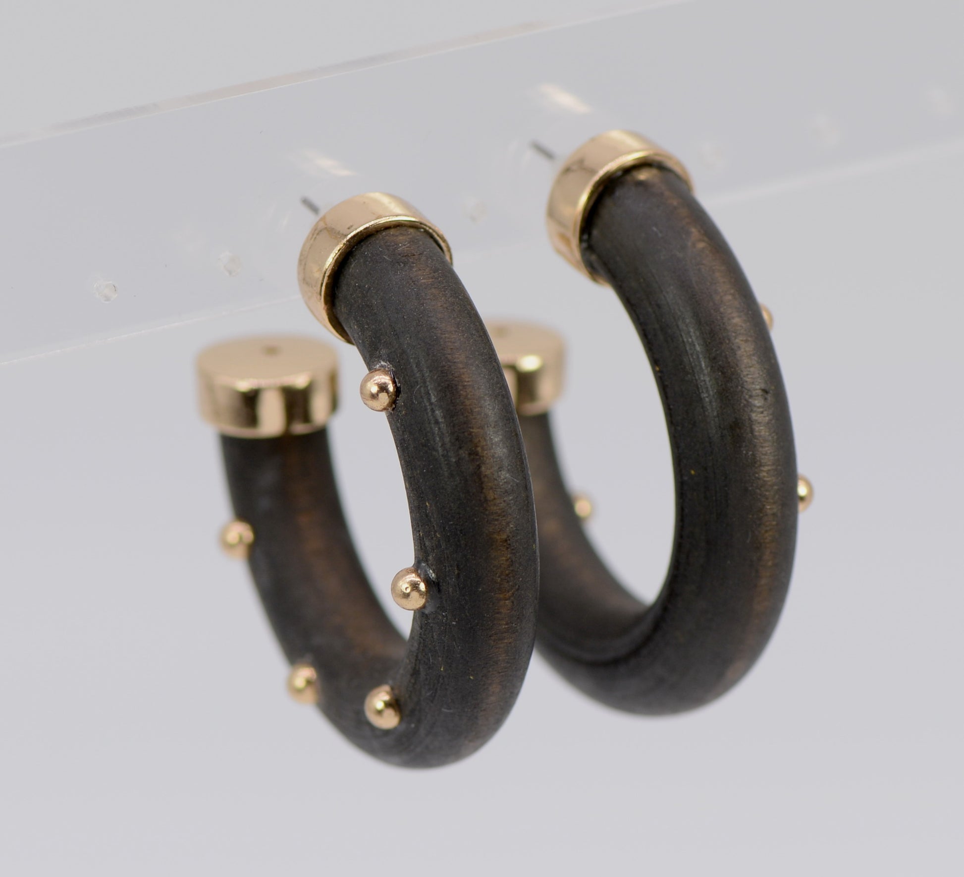 E1167 83E1803 Wood Open Circle Drop Post Hoop Earrings