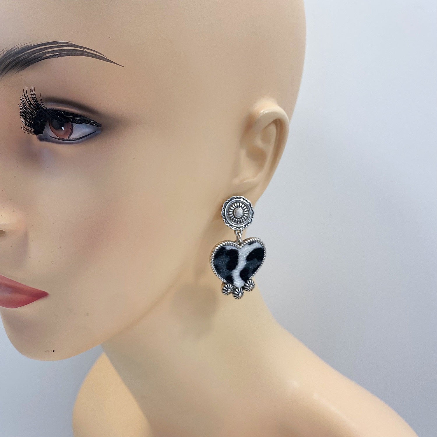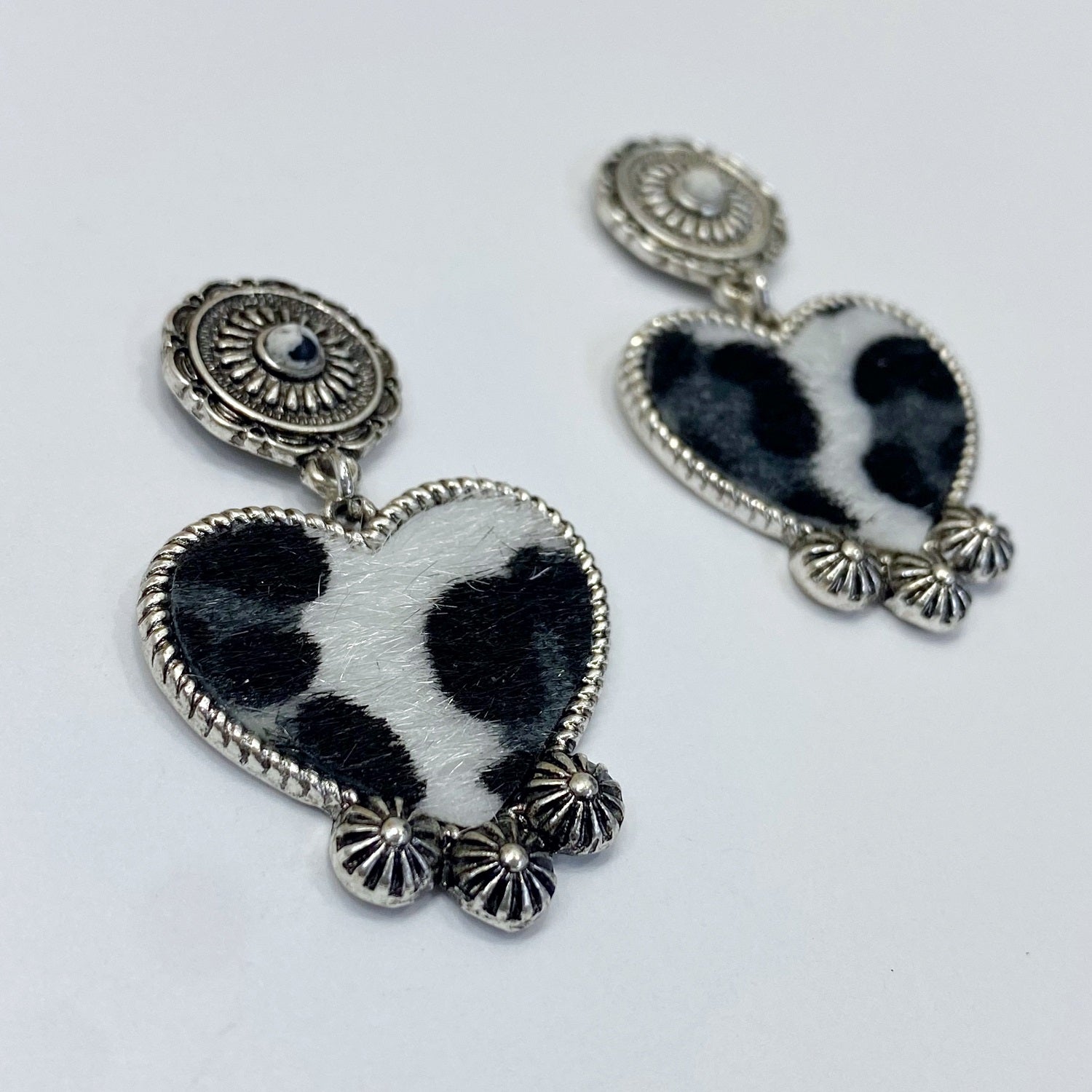 E0949 AE4107 Animal Leopard Pattern Faux Fur Heart Love Shape Drop Dangle Post earrings