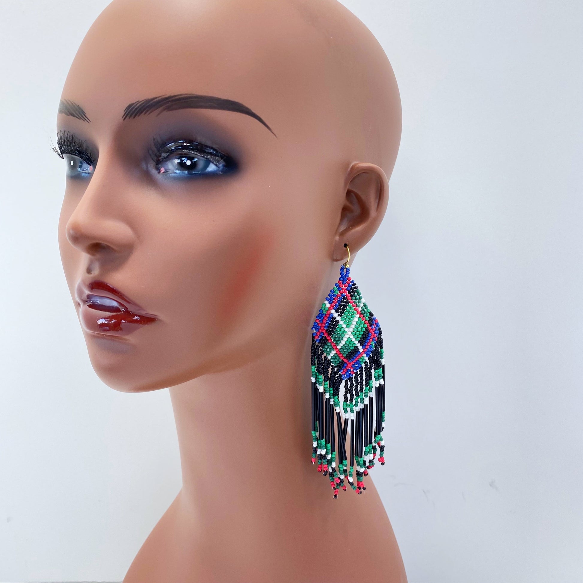 E0729 AE4756 Beads Deco Tassel Fringe Drop Dangle Hook Earrings