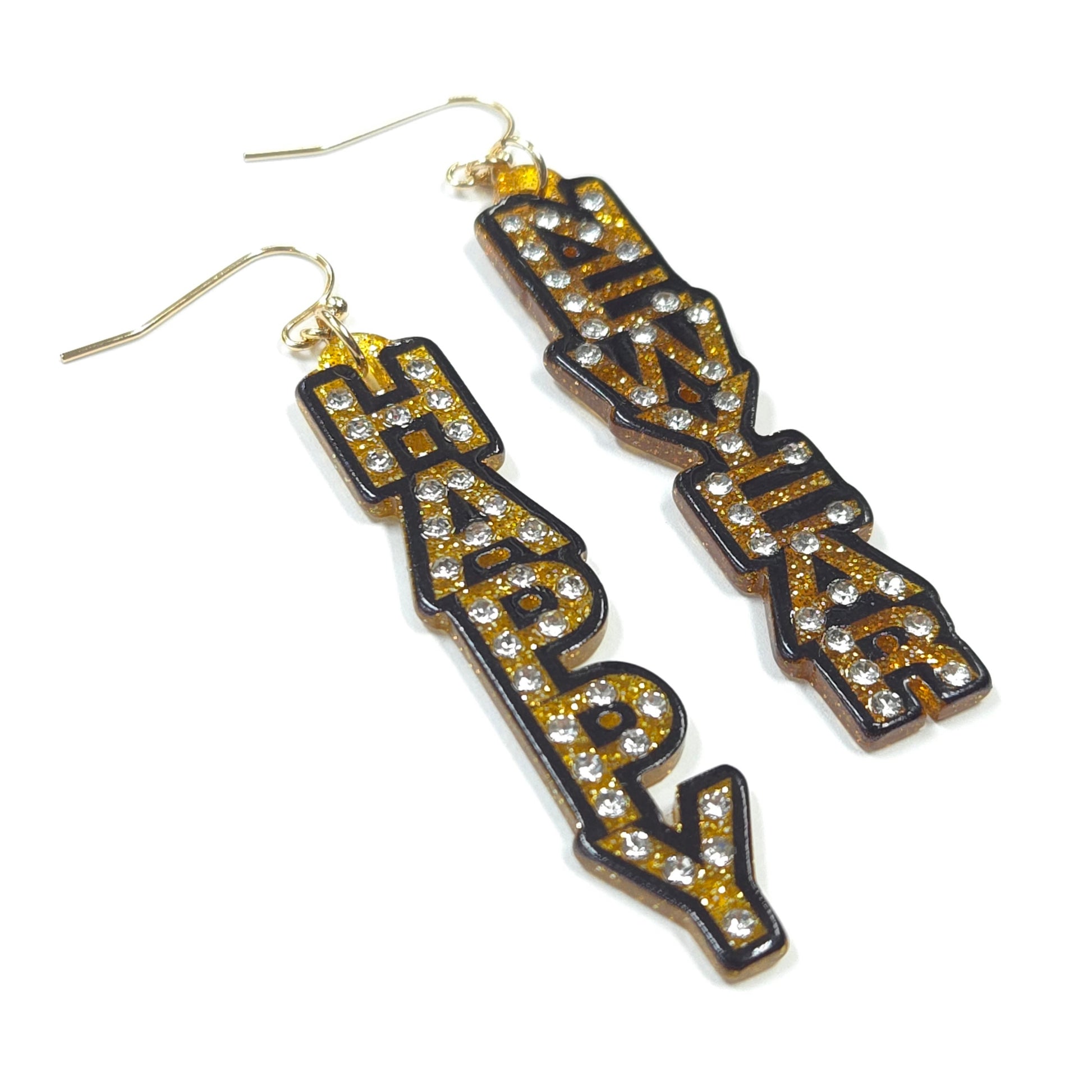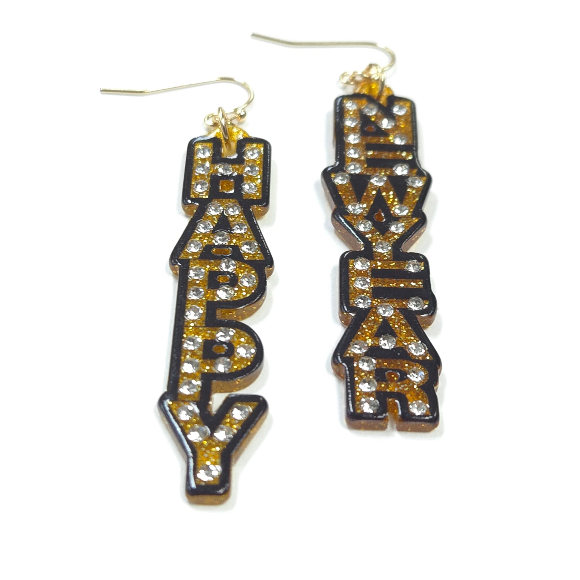 Acrylic HAPPY NEW YEAR Design Drop Dangle Hook Earrings