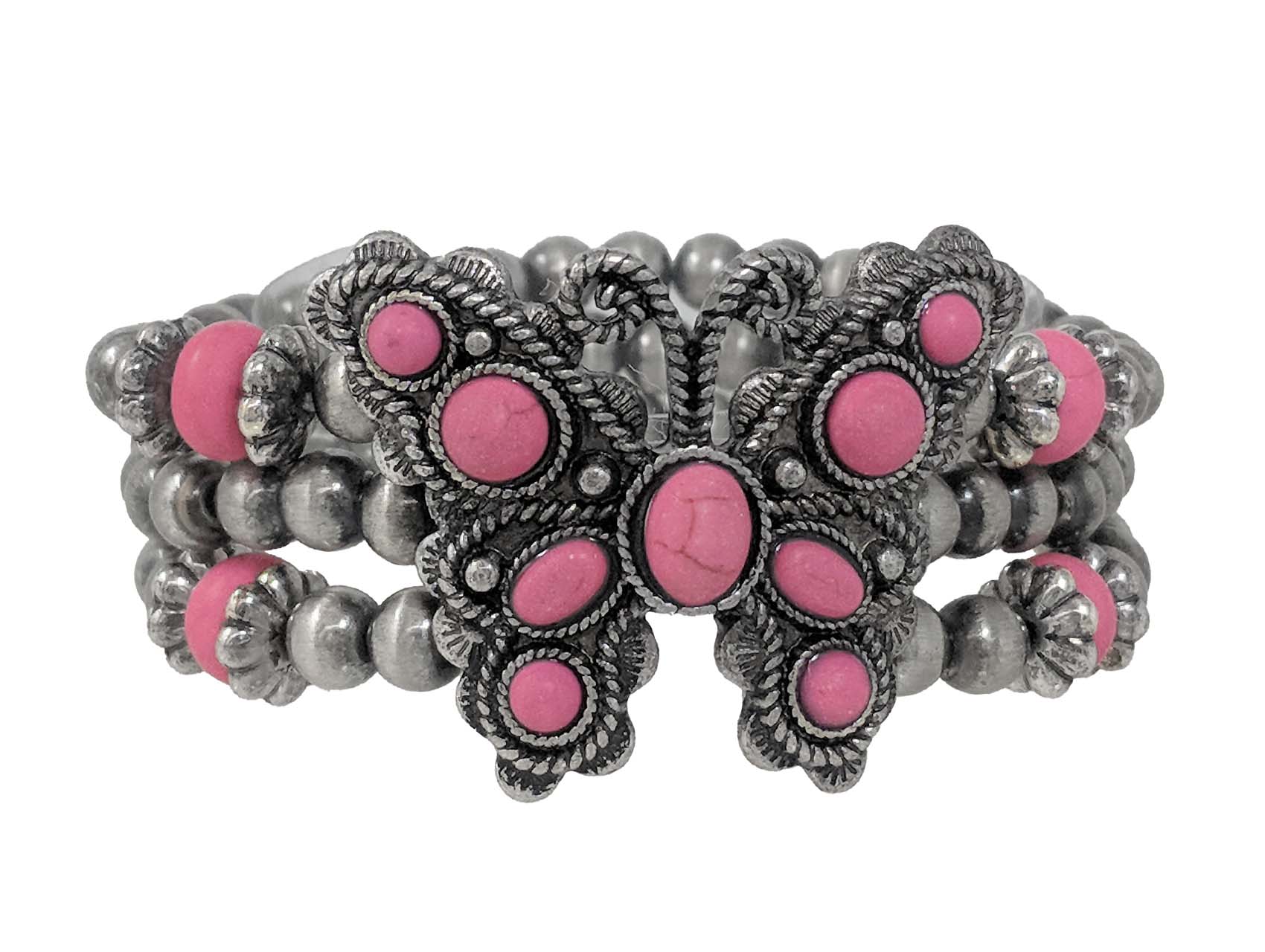 Turquoise Stone Deco Animal Butterfly Design Accented Stretchable Bracelet