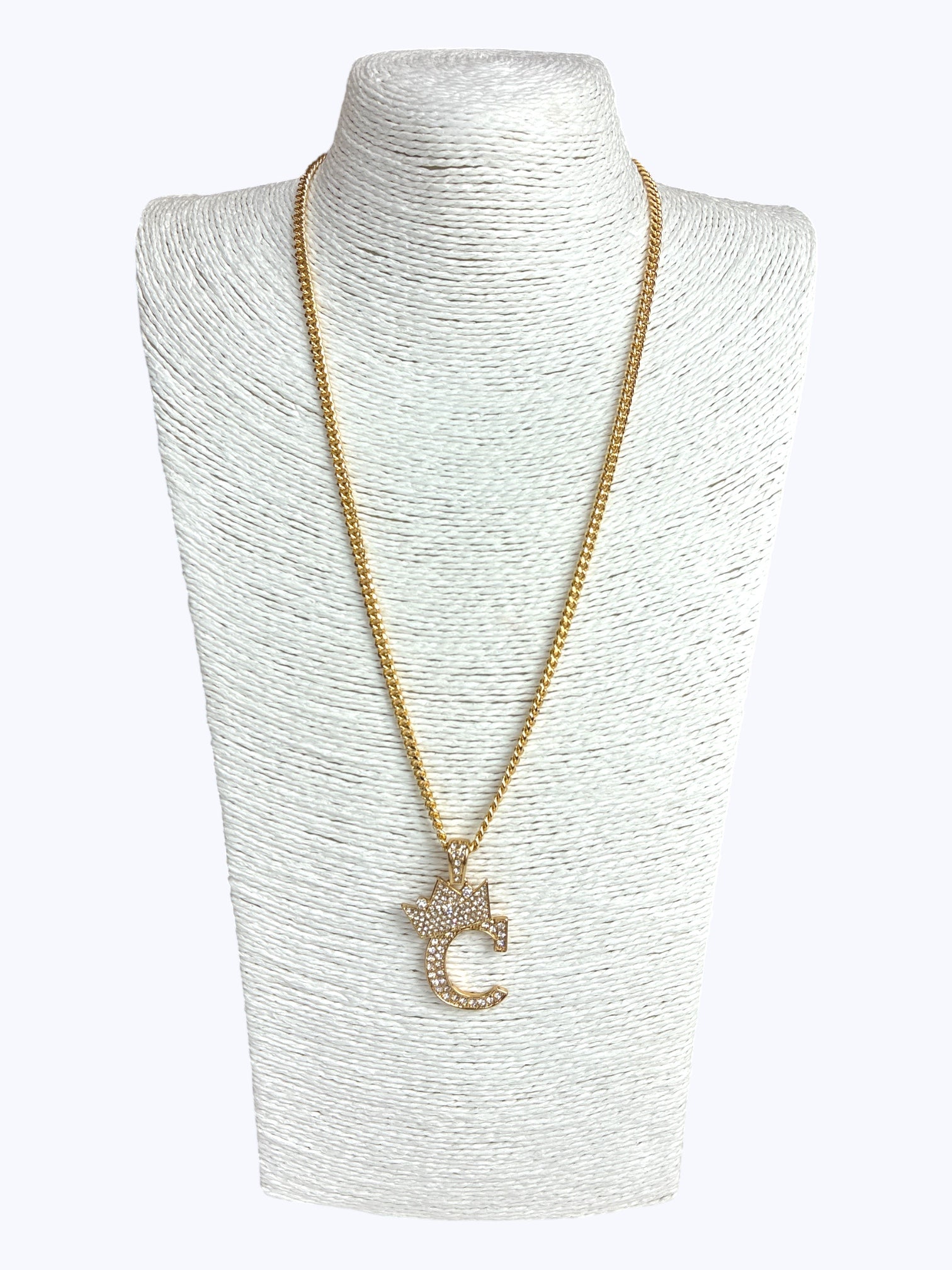 ''C'' Rhinestones Crown Initial Letter Chain Necklace