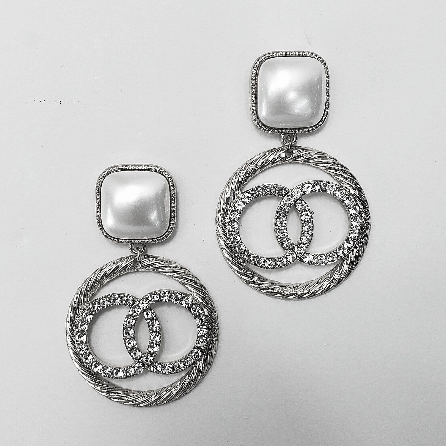 Rhinestones Deco Double Circle Design Drop Dangle Post Earrings