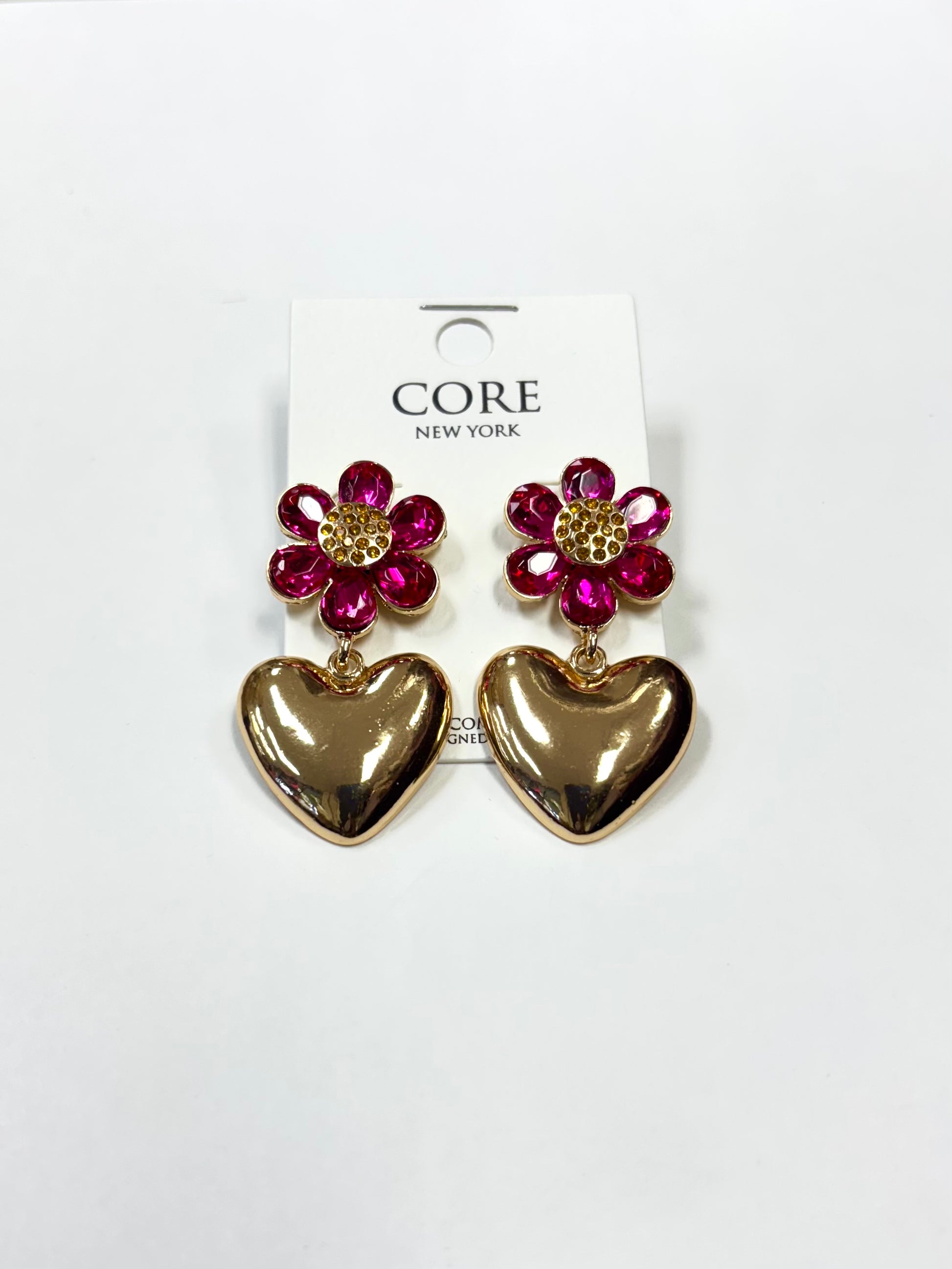 E2005 | Floral Heart Drop Earrings | TE3181G