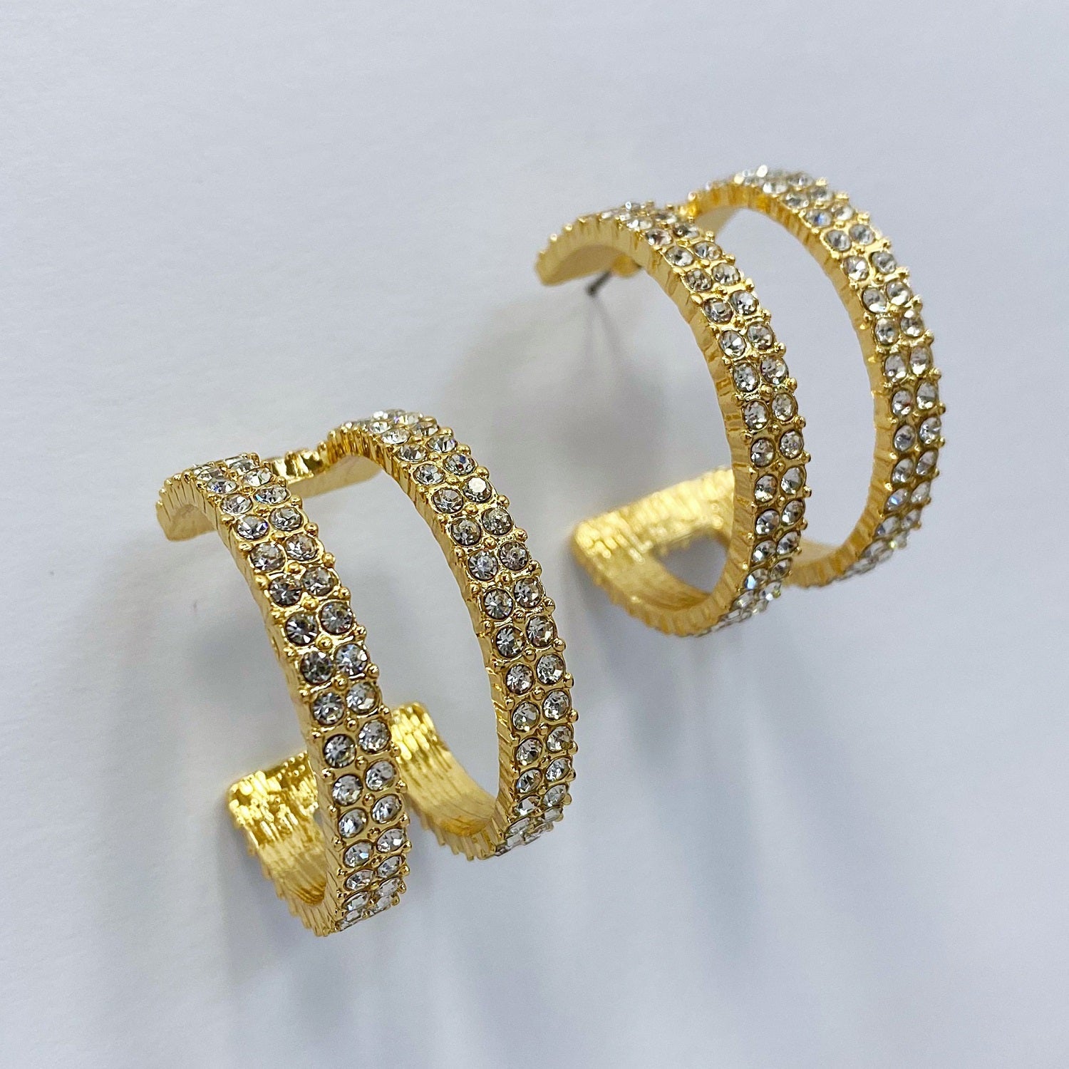 Rhinestones Deco Open Circle Shape Hoop Style Post Earrings