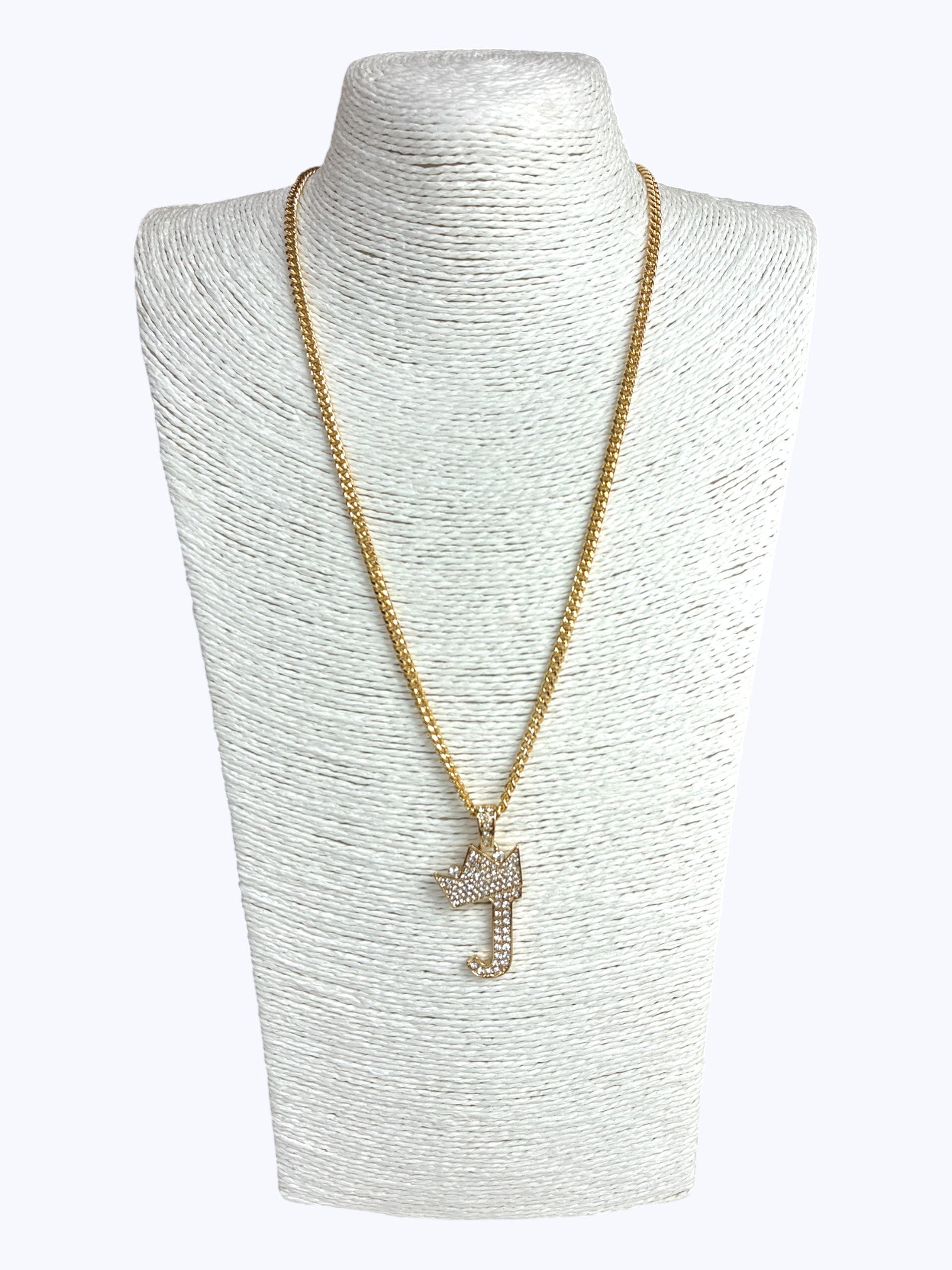 ''J'' Rhinestones Crown Initial Letter Chain Necklace