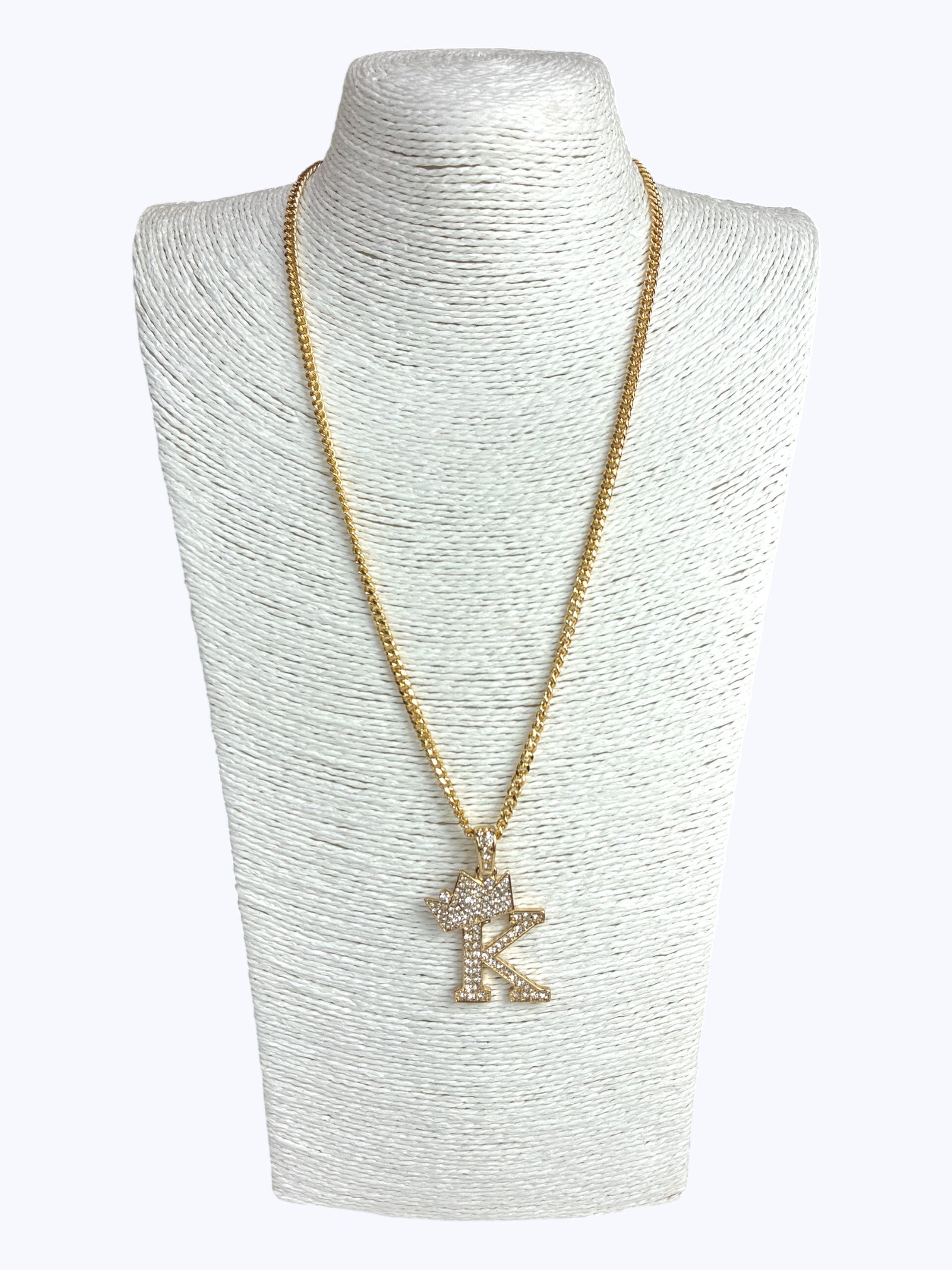 ''K'' Rhinestones Crown Initial Letter Chain Necklace