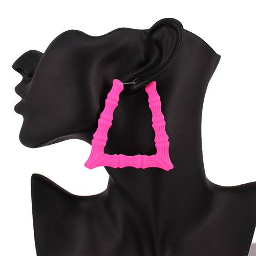 BAMBOO Design Open Triangle Shape Hoop Style Post Earrings