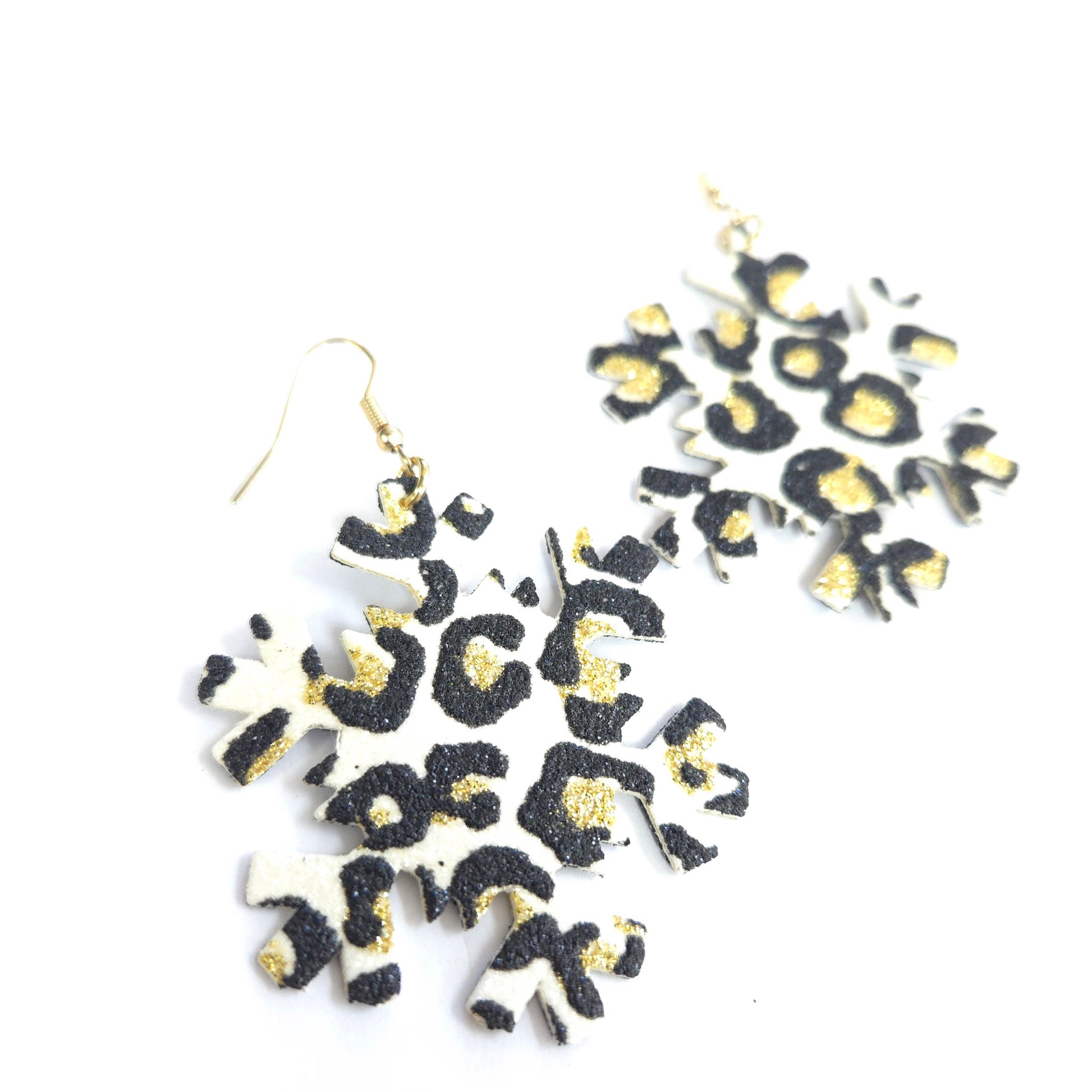 Glitter Snowflake Design Drop Dangle Hook Earrings