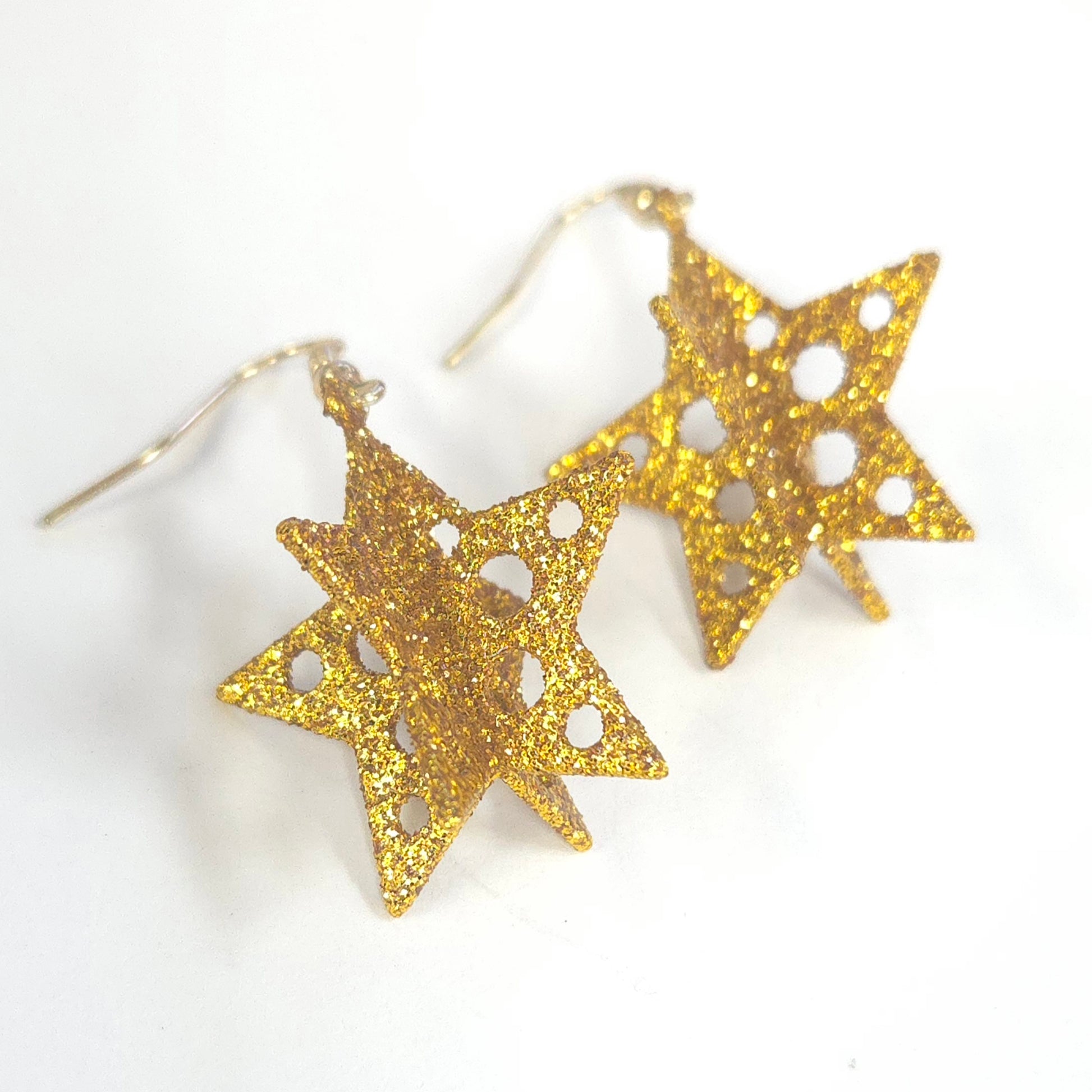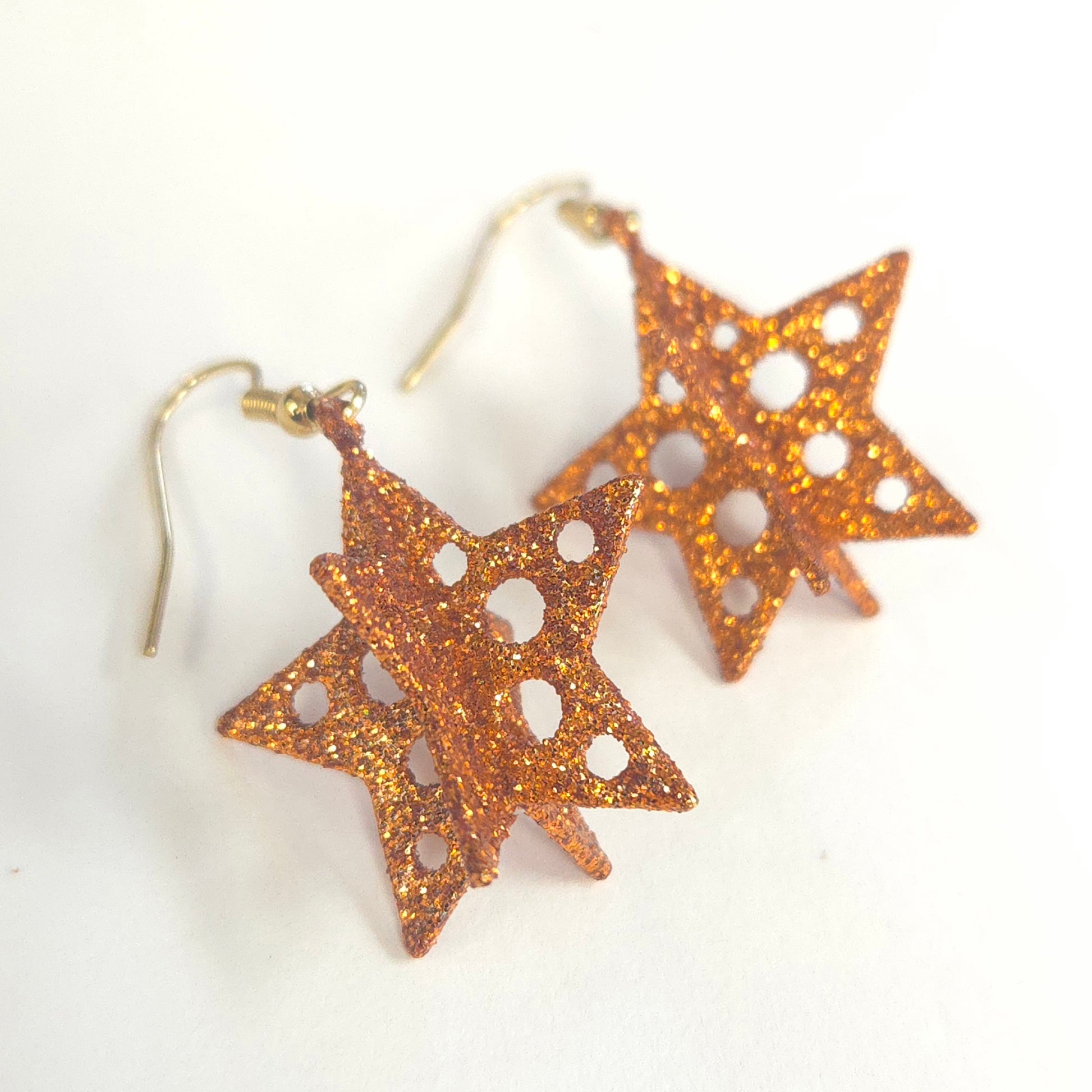 Glitter 3d Star Design Drop Dangle Hook Earrings