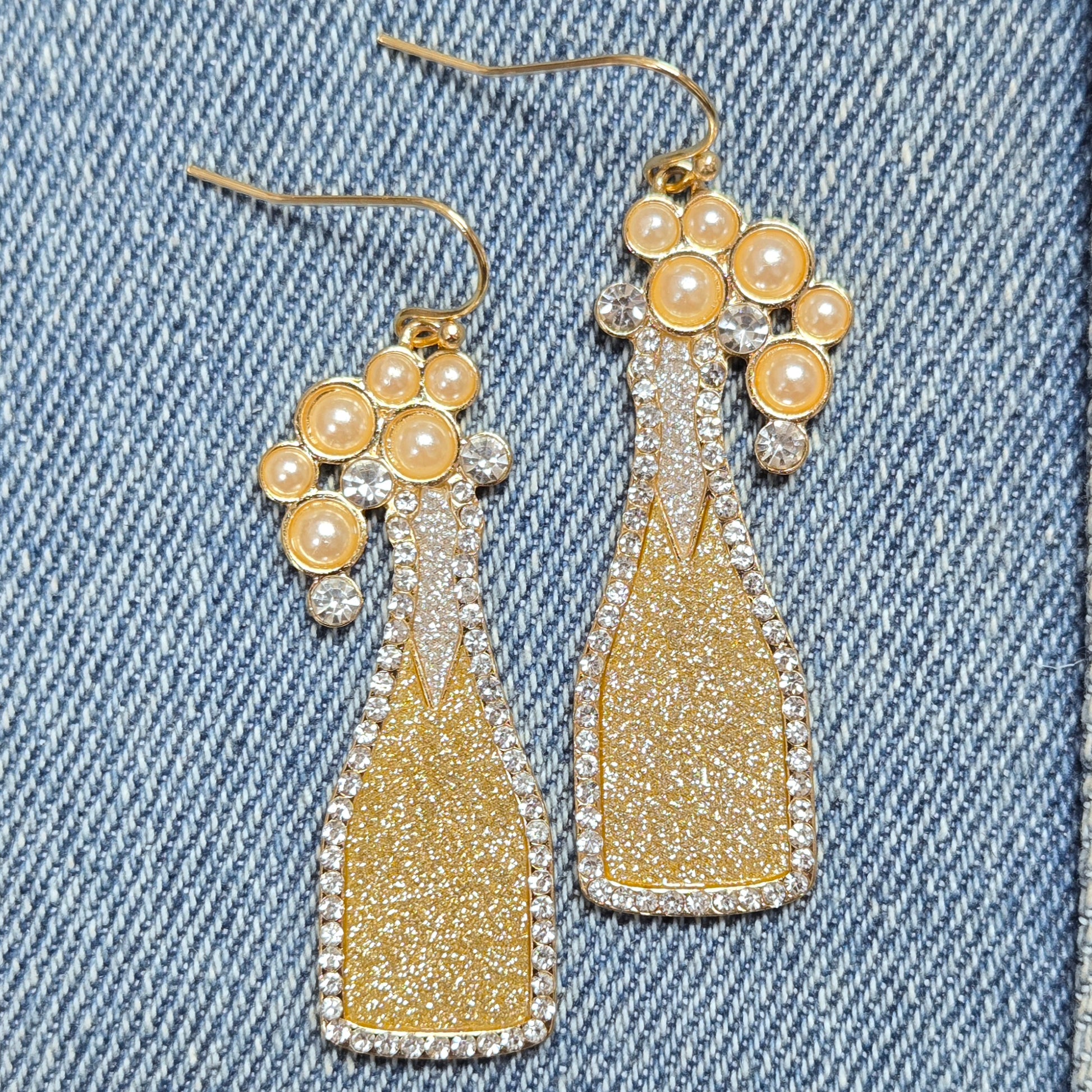 Glitter & Rhinestones Deco Wine Bottle Design Drop Dangle Hook Earrings