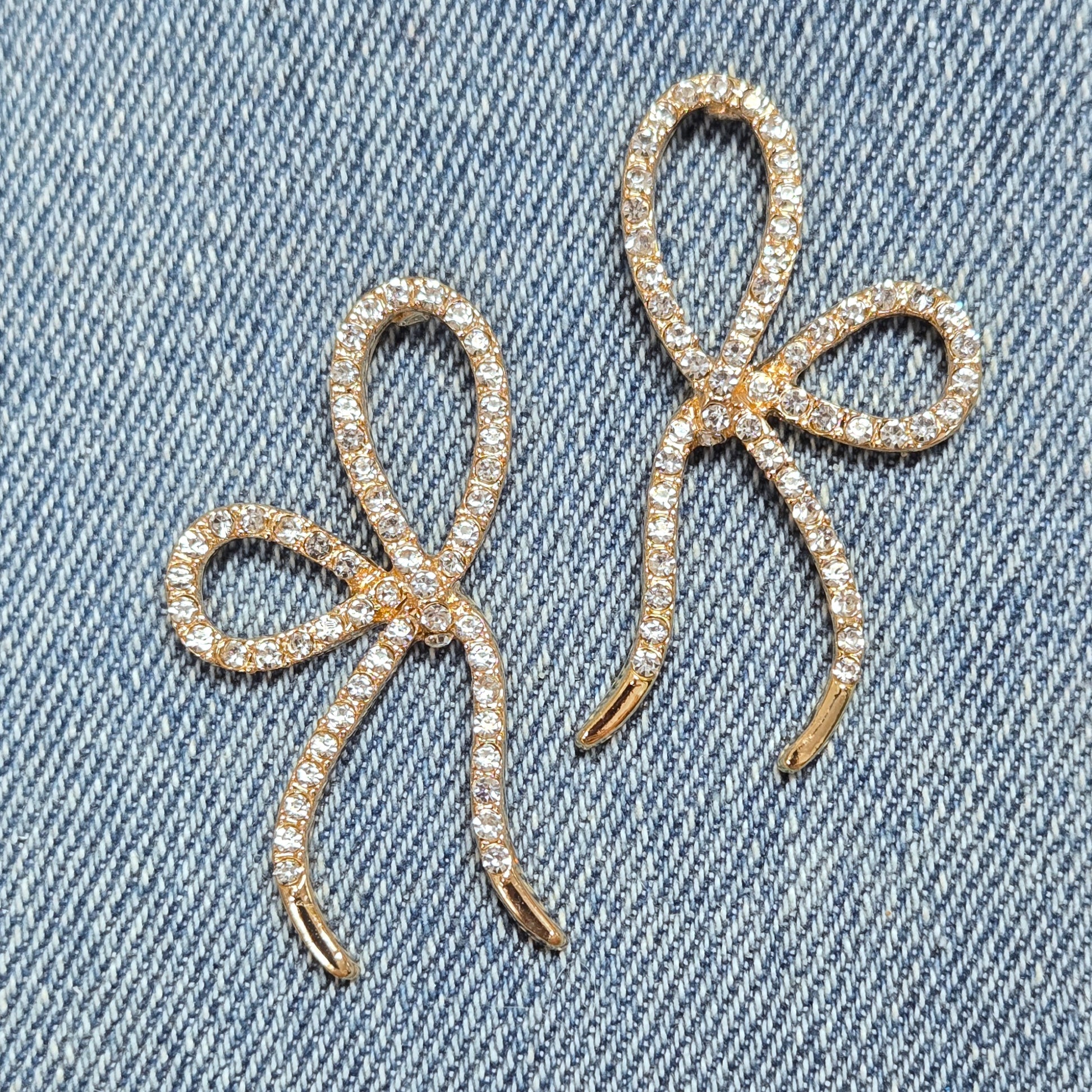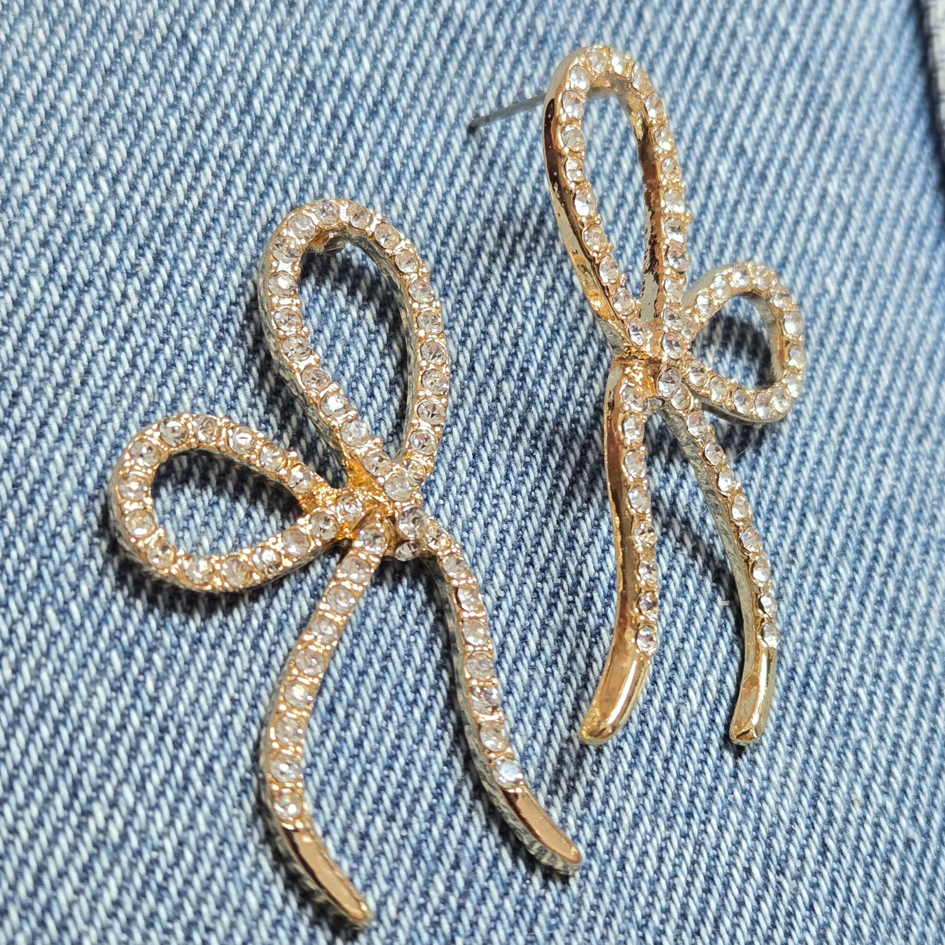 Rhinestones Deco Bowtie Design Drop Dangle Post Earrings