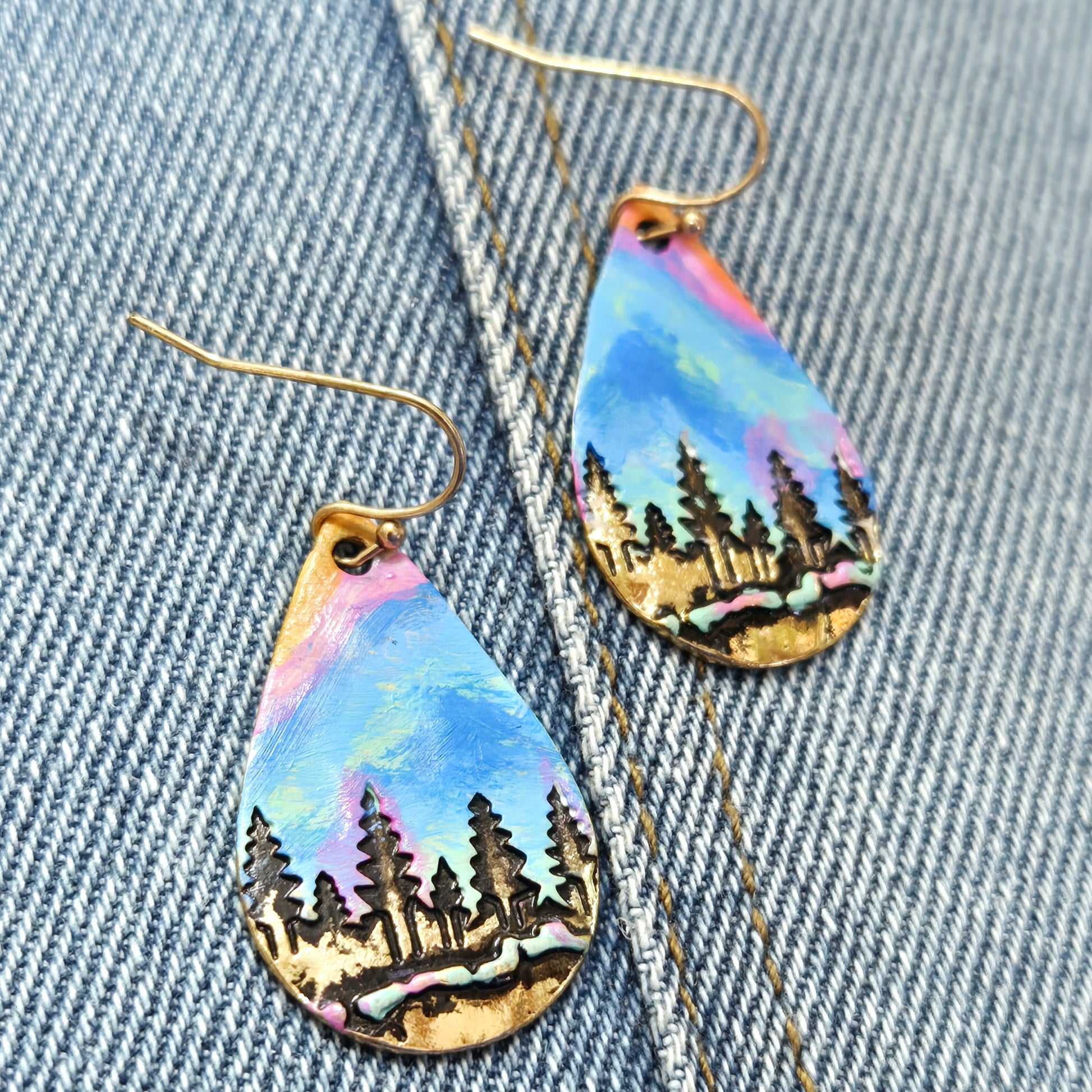 Metal Forrest Design Engraved Teardrop Shape Drop Dangle Hook Earrings