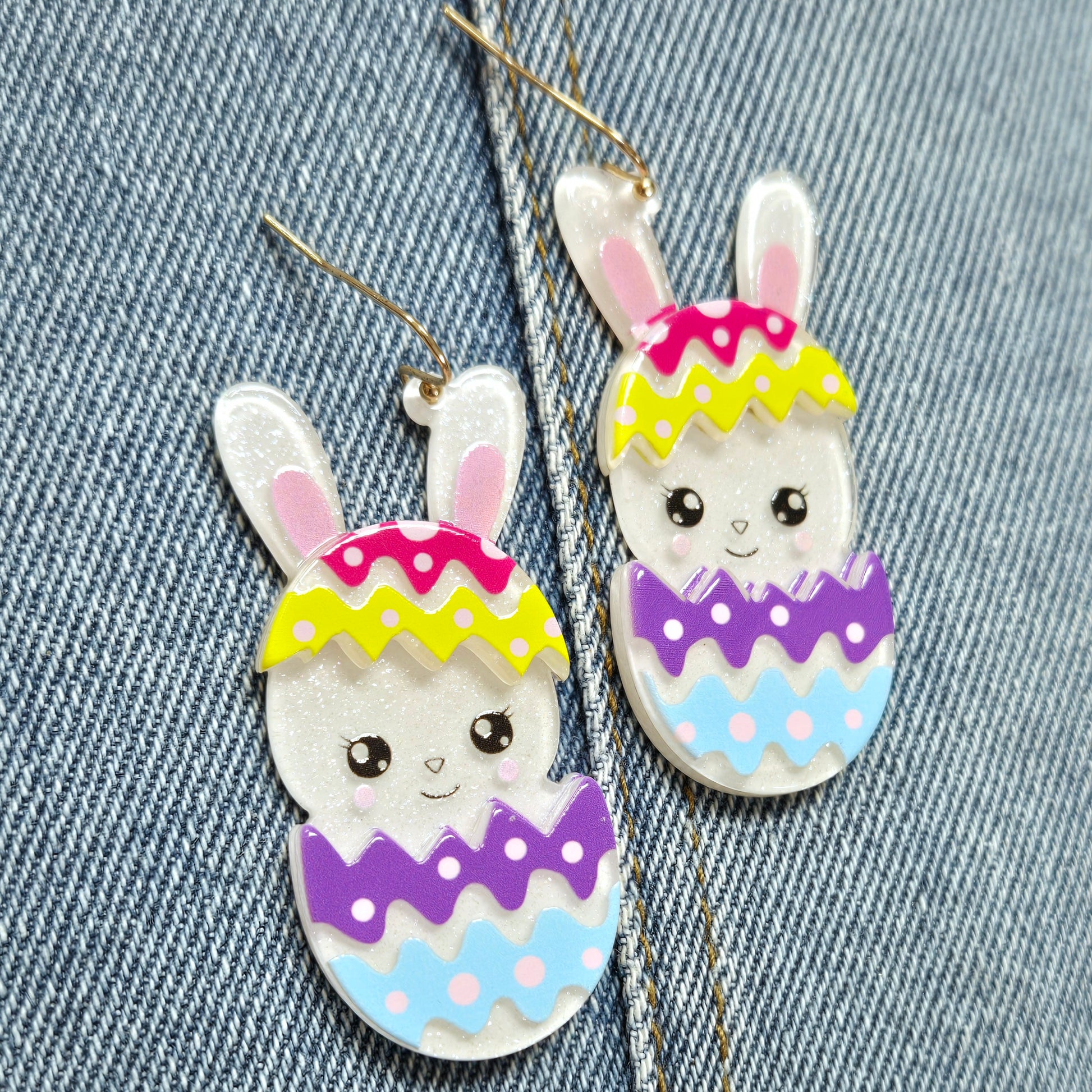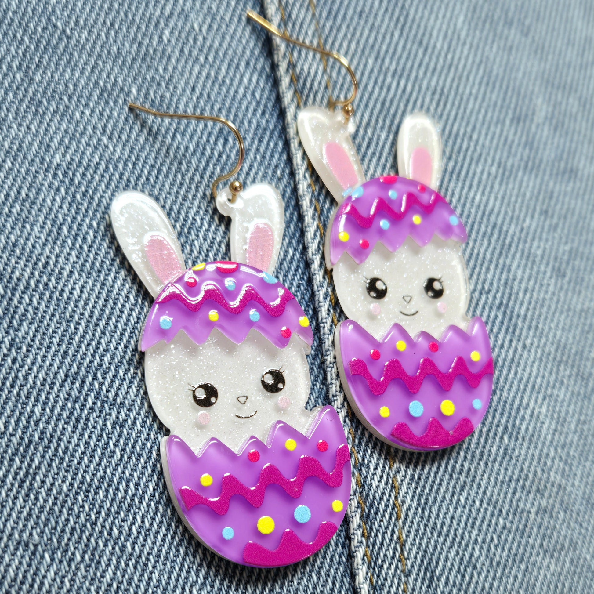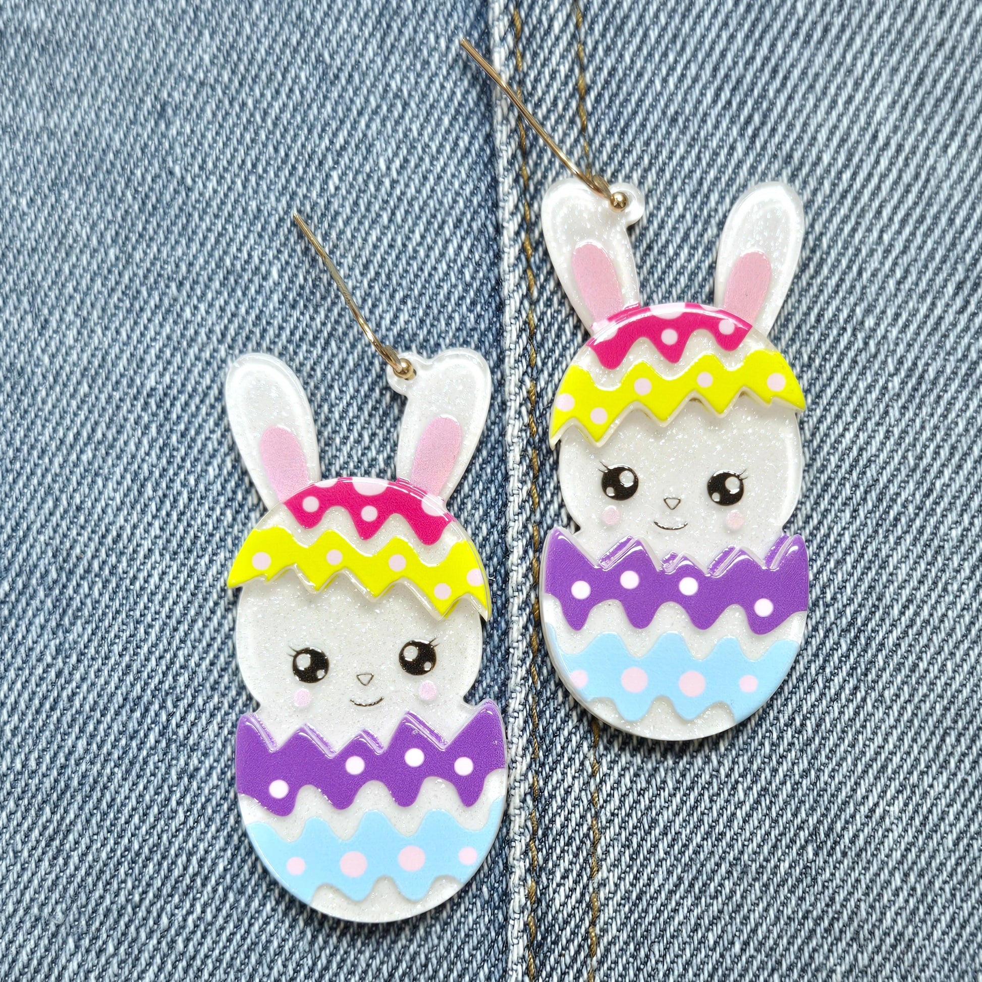 Acrylic Easter Bunny Design Drop Dangle Hook Earrings