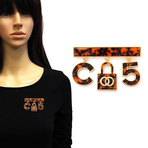 Acetate Lock, Alphabet and Number Dangling Brooch